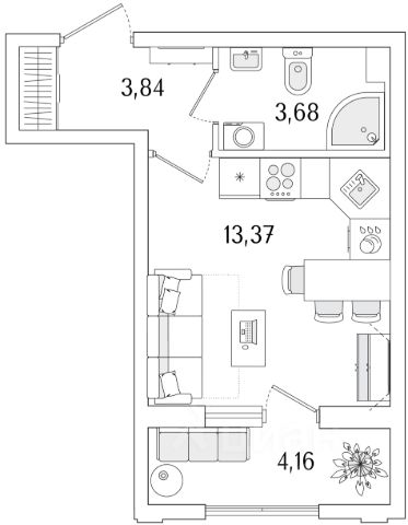 Продается светлая однокомнатная квартира площадью 39 кв. м в уникальном камерном жилом комплексе, расположенном всего в десяти минутах от Невского проспекта!