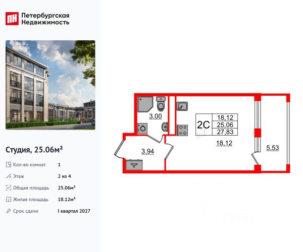 • ✓ В базе Циан 47 квартир-студий на 2 этаже в микрорайоне Стрельна в Санкт-Петербурге