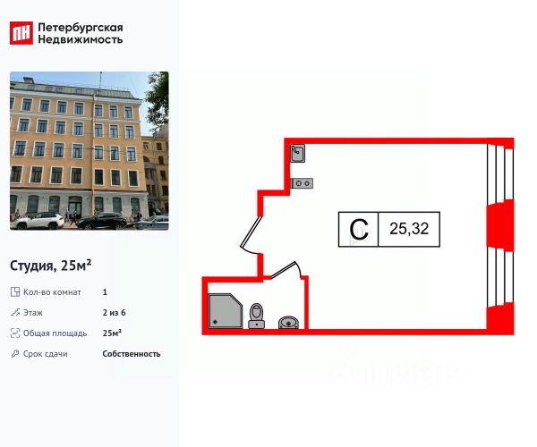 Студия 14 м2, 2 этаж (удобное расположение относительно других студий)