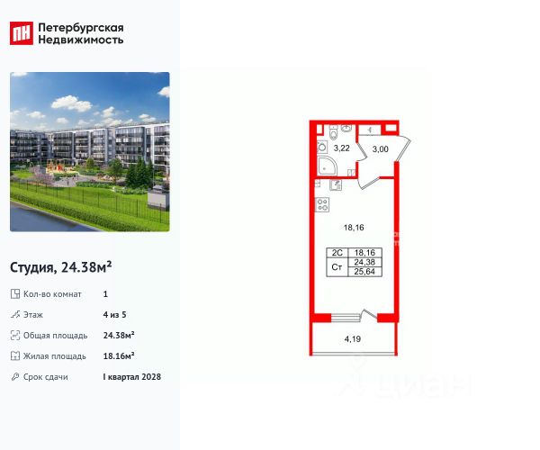• ✓ В базе Циан 46 квартир-студий на 4 этаже рядом с метро Дунайская