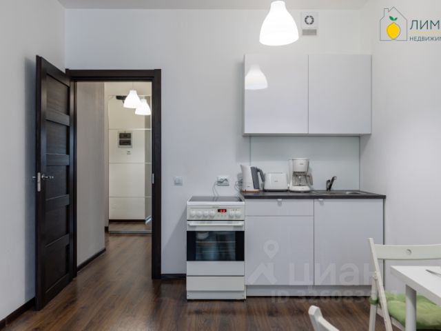 2) Большая кухня-гостиная площадью 24,6 м², зонированная на кухонную зону и место для отдыха. Внушительная площадь жилой зоны дает возможность трансформации квартиры в 1-комнатную.