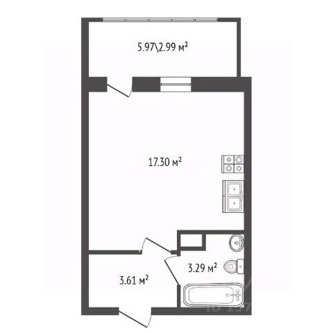 Общая площадь квартиры 23,7 кв.м. + лоджия 6 кв.м.: