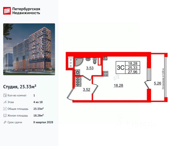 Продается просторная студия от застройщика в жилом комплексе "Город звезд" в новом городе на правом берегу Невы. До метро можно добраться на транспорте всего за 13 минут. Удобная, классическая, функциональная европланировка, просторная прихожая 3.3 м². Общая площадь студии - 24.85 м², жилая 18.04 м², высота потолка 2.77 м. Квартира продается с отделкой "NORD LINE SILVER". Что особенного в ЖК "Город звезд"? • Инновационный Лицей Setl с оригинальной архитектурной концепцией и уникальной образовательной средой • Невский лесопарк под окнами - всегда свежий воздух и полноценный отдых на природе • Четыре тематические площади отдыха с разнообразным благоустройством • Аллея Звёзд - променад протяженностью 5 км с ландшафтным озеленением, зонами отдыха и велодорожкой • Выход на набережную реки Утки, где можно порыбачить или взять напрокат лодку • Единая входная группа с ресепшен и подземный паркинг
