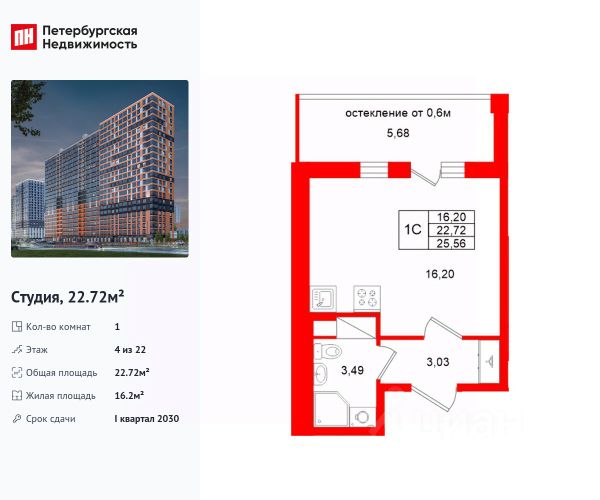 • ✓ В базе Циан 49 квартир-студий на 4 этаже рядом с метро Рыбацкое