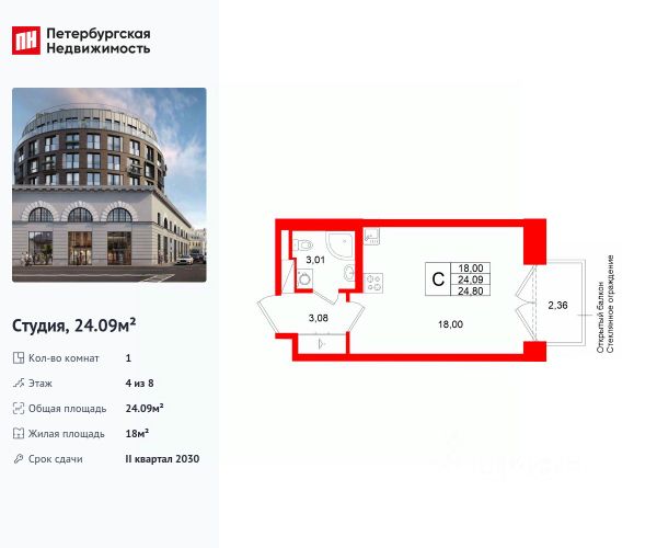 Продается уютная студия от застройщика в жилом комплексе "Аристократ" в уютном Василеостровском районе. До метро можно добраться пешком всего за 10 минут. Удобная, классическая, функциональная европланировка, вместительная прихожая 3.08 м². Общая площадь студии - 24.09 м², жилая 18 м², высота потолка 2.72 м. Квартира продается с отделкой "Норд Лайн бизнес". Что особенного в ЖК "Аристократ"? • Премиальная отделка квартир - Норд Лайн бизнес • Васильевский остров - историческая локация с современными культурными кластерами • Индивидуальный облик каждого корпуса в единой архитектурной концепции • 7 парадных лобби с потолками до 7-ми метров • Цветущие сады, зеленые гостиные, фонтаны • Клуб резидентов "Аристократ": фитнес-клуб, коворкинг, гостиная с роялем, детский центр с кинотеатром • Технологичная среда на территории, в доме и в квартире
