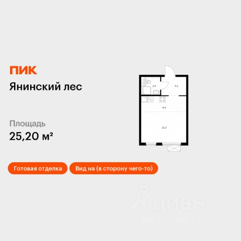 Продаётся квартира-студия площадью 22,1 кв.м на 4 этаже 15 этажного дома (Корпус 1, Секция 1) проекта ПИК Янинский лес. Светлый просторный подъезд на уровне земли, функциональная планировка, большие окна, c отделкой. Жилой квартал "Янинский лес" возводится в районе Янино-1 Ленинградской области. Автобусная остановка находится в 3 минутах пешком. Проект расположен вплотную к восточной границе Санкт-Петербурга - в 4 минутах от КАД. До метро "Ладожская" - 23 минуты на общественном транспорте. До исторического центра города можно доехать за 25 минут на автомобиле. "Янинский лес" - масштабный проект из 32 жилых корпусов, где будет всё для комфортной жизни. Здесь предусмотрены надземные паркинги, откроются детские сады, школа и поликлиника. Кроме этого, появятся места, в которых можно проводить свободное время: ледовая арена и торговый центр площадью больше 3000 м². Жилой район строится по всем правилам ПИК-Стандарта: в зелёных дворах-парках появятся современные детские и спортивные площадки, пешеходный бульвар и другие места для отдыха. На первых этажах разместятся магазины, кафе и другие сервисы. Во дворах не будет автомобилей, а для гостей предусмотрены парковочные места. Проект окружают лесные массивы. В пешей доступности находится Ржевский лесопарк: летом там можно гулять и собирать грибы, а зимой кататься на лыжах. Также рядом расположен памятник природы Колтушские высоты - парк с обустроенными экотропами и веломаршрутом. А главное место притяжения местных жителей - озеро с обустроенным местом для пикников. Артикул 1048642 (Застройщик ООО "СПЕЦИАЛИЗИРОВАННЫЙ ЗАСТРОЙЩИК"ЭКСТРАГРАД") [cn_sbp_1841759]