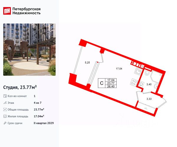 • ✓ В базе Циан 4 квартир-студий на 4 этаже в округе № 7 в Санкт-Петербурге
