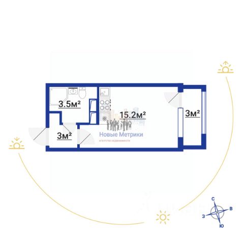 Общая площадь квартиры 23,7 кв.м. + лоджия 6 кв.м.: