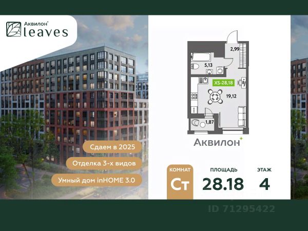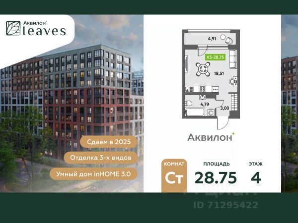 Продается однокомнатная квартира-студия с отделкой в ЖК "ORO by Akvilon" на 4 этаже. Общая площадь: 24.58 кв.м., площадь гостиной 14.41 кв.м., из которых 5.61 кв.м. выделено под кухонную зону. Все окна выходят на одну сторону. В квартире одна лоджия, один совмещенный санузел. Высота потолков 2.85 м. Дом монолитный, двухподъездный, высотой 17 этажей. Квартира находится в 1-й секции в корпусе 2. На этаже 7 квартир. В подъезде 1 пассажирский и 1 грузовой лифт. Окончание строительства - 4 квартал 2027 года. Оформление сделки по договору долевого участия. В шаговой доступности от жилого комплекса находится станция метро (расстояние по прямой) "Звёздная" (800 м), также недалеко от этого корпуса находятся станции метро: "Купчино", "Московская", "Ленинский Проспект", "Дунайская". ЖК "ORO by Akvilon" - старт продаж жилого комплекса бизнес-класса в Московском районе. -Панорамные окна в пол во всех квартирах -Алюминиевые оконные профили с многокамерными стеклопакетами -Французские балконы с золотой окантовкой -Высота этажа 3,15 метра -Увеличенные дверные проемы - 2,3 метров высотой -Выделенные места для кондиционеров на каждом этаже -Фреоновые трубки заведенные в квартиру от мест установки внешних блоков кондиционеров -Дизайнерская отделка гранд-лобби с биокамином и золотыми элементами -Импортные бесшумные лифты с дизайнерской отделкой и увеличенной высотой кабины Отделка квартир Премиальная отделка в двух цветовых решениях: Beigestone и Greystone. Дозаказ для любой квартиры Стандарты Группы Аквилон для вашей комфортной жизни Thermo-S экономия на коммунальных платежах за счет дополнительно утепленных стен, кровли и цоколя. Энергоэффективные окна с селективным покрытием и аргоновым заполнением Soundstop - дополнительная шумоизоляция внутренних перегородок и межэтажных перекрытий, шумозащитные окна, малошумные лифты Light-in - в квартирах комфортный микроклимат. Многокамерные стеклопакеты сохраняют тепло зимой и отсеивают излишки излучения солнечного света летом, сохраняя прохладу в помещении. Vent-in - в каждой комнате есть клапаны индивидуальной вентиляции, которые обеспечивают приток свежего воздуха с улицы. inHOME умный дом в каждой квартире Интеллектуальная цифровая система, которая позволит дистанционно решать бытовые вопросы, управлять квартирой и экономить на оплате коммунальных услуг. В состав inHOME входят: IP-домофон, Face key, "умные" счетчики, датчики протечки, дистанционное отключение розеток, и т.д. Подземный паркинг -Лифты в каждой секции со спуском в паркинг -Отделка лифтовых холлов паркинга в стиле Гранд лобби + дизайнерская навигация самого паркинга -Возможность установки электрозарядки в паркинге или на территории ЖК -GSM усилитель в паркинге Двор -Ландшафтный дизайн с геопластикой и цветочными аркадами -Сад цветущих сезонов -Разноуровневая подсветка -Детские площадки нового поколения -Живой зелёный забор -Закрытый двор без машин Локация -7 мин. до м. Звездная -10 мин. до м. Московская -15