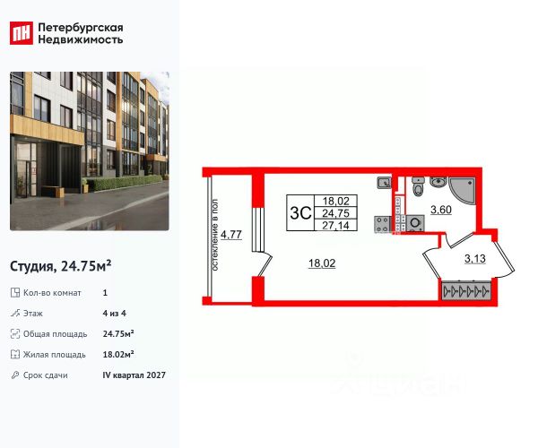 Цена действует при 100% оплате и на определенные ипотечные программы. Подробности — в отделе продаж по телефону. Продается студия в ЖК "Пулково Лейк" на 4 этаже. Общая площадь составляет 21.80 кв. м. Квартира с чистовой отделкой. Жилой комплекс "Пулково Лейк" располагается по адресу Санкт-Петербург, Московский. Пулково Лейк - проект малоэтажной застройки на берегу озера на границе Московского и Пушкинского районов. Дома высотой всего 4 этажа, квартиры от уютных студий до трехкомнатных квартир для большой семьи. Широчайший выбор планировок, включая квартиры с мастер-спальнями, патио, каминами, саунами, двухуровневые квартиры. Школа, детские сады, парк на берегу озера и выезды на Пулковское и Петербургское шоссе. Расположение: • 5 мин на авто до Аэропорта Пулково; • 10 мин на авто до станций метро "Московская; • 10-15 мин на авто до городов Пушкина, Павловска и Гатчины; • 20 мин на авто до центра Санкт-Петербурга. Квартиры в проекте сдаются с предчистовой и чистовой отделкой Соmfоrt Stоnе и Соmfоrt Wооd по современным стандартам - Вы можете сами выбрать отделку, подходящую именно Вам. Дома оборудованы самыми современными инженерными системами и "Умным домом". В рамках проекта будет построена современная школа на 925 мест и 2 детских сада на 160 и 240 мест, выезды на Пулковское и Петербургское шоссе, а также храм рядом со сквером "Пулковский рубеж". Общественное пространство вдоль берега озера превратится во всесезонный парк, в котором найдется место для любых активностей от пробежек, катания на САПах и велосипедах до отдыха в шезлонгах и любования закатом солнца. Зимой будет работать каток, проложен лыжный маршрут, предусмотрено место для новогодней елки и горок для детей. Для Ваших питомцев - площадка для выгула собак. Преимущества: • Высота потолков от 2,6 до 4,5 м; • Уникальные планировки; • Парк на берегу озера; • Система "Умный дом"; • Дворы без машин; • Колясочная в парадной; • Видеонаблюдение в холлах, на первом этаже, в лифтах и в паркингах. Успейте приобрести квартиру на выгодных условиях! Чтобы узнать подробности, обращайтесь за консультацией по телефону.