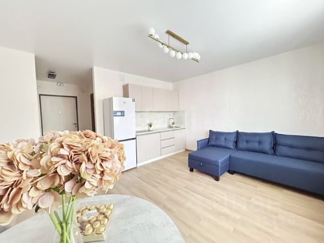 Просторная 1-комн. квартира-студия с предчистовой отделкой в ЖК "Брусника в Новоселье" на 5 этаже. Общая площадь: 32.95 кв.м., площадь гостиной 21.7 кв.м., из которых 5 кв.м. выделено под кухонную зону. Все окна выходят на одну сторону. В квартире один балкон, один совмещенный санузел. Высота потолков 2.7 м.