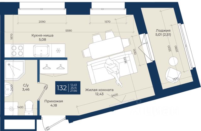 Продаётся студия в сданном доме (Уланская, 1), срок сдачи: II-кв. 2024, общей площадью 26.7 кв.м., на 5 этаже. Расположение, транспортная доступность
