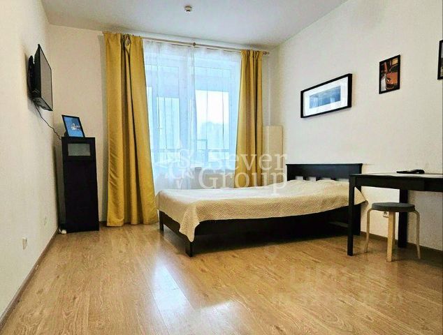 Большая комната с 2-мя окнами, с четко выделенной кухонной и жилой зоной позволяет комфортно разместить всю необходимую мебель. При входе в квартиру справа есть большая ниша, которая может быть использована как гардеробная, кабинет, спальня. На потолке установлена закладная балка, которая позволит при необходимости установить перегородку с дверью. При входе в квартиру слева есть место под зону раздевания, с возможностью размещения небольшого шкафа. В комнате и в прихожей 2-х зонное освещение.