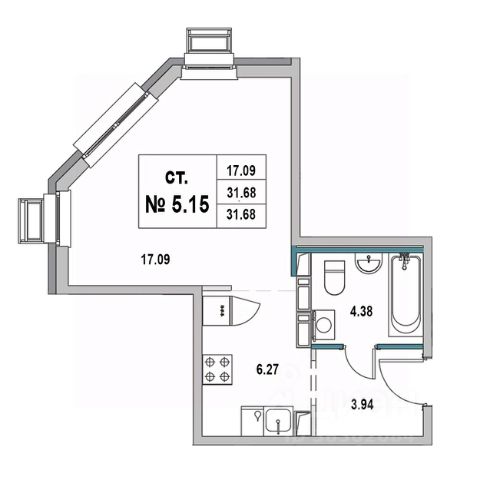 Продаётся студия в строящемся доме (Дом 1), срок сдачи: IV-кв. 2025, общей площадью 31.68 кв.м., на 5 этаже. Новый жилой дом от застройщика "Унистрой" расположен по адресу Ленинградская область, Выборг, 2-я Южная улица.