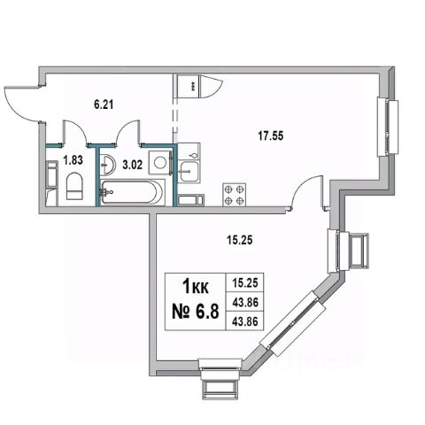Продаётся 1-комнатная квартира в строящемся доме (Дом 1), срок сдачи: IV-кв. 2025, общей площадью 43.86 кв.м., на 6 этаже. Новый жилой дом от застройщика "Унистрой" расположен по адресу Ленинградская область, Выборг, 2-я Южная улица.