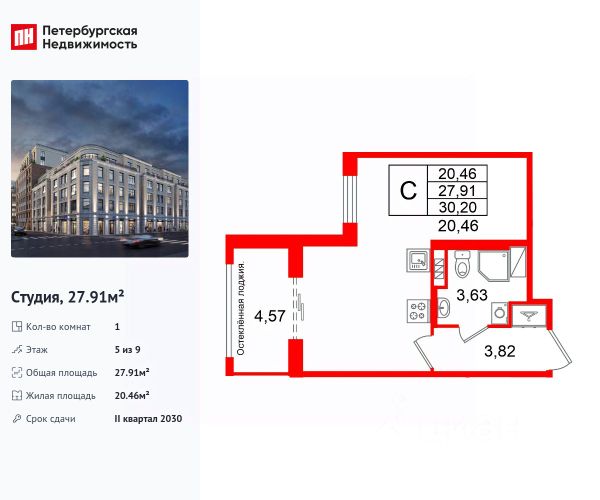 Цена действует при 100% оплате и на определенные ипотечные программы. Подробности — в отделе продаж по телефону. Продаётся студия в ЖК "Измайловский" на 5 этаже. Общая площадь составляет 22.90 кв. м. Квартира с white box отделкой. Жилой комплекс "Измайловский" располагается по адресу Санкт-Петербург, Адмиралтейский. "Измайловский" - новый проект бизнес-класса в историческом районе. Дом скрыт от шумных проспектов внутри уютного малоэтажного квартала с зелёными двориками. Расположение: • 10 мин пешком до станций метро "Фрунзенская", "Балтийская" и "Технологический институт"; • 10 мин на авто до Невского проспекта; • 5 мин на авто до Балтийского вокзала; • 10 мин на авто Витебского вокзала; • 30 мин на авто до Аэропорта Пулково. Недалеко находятся памятники архитектуры: Троицкий, Никольский и Исаакиевский соборы, музей-усадьба Державина и другие. Рядом масса возможностей для разнообразного досуга: Молодежный театр, Мариинский театр и детский театр "На Неве". Встроенная система "Умный дом" будет открывать доступ в паркинг и парадные. Через приложение можно оформить гостевой доступ. Система умеет автоматически фиксировать показания счетчиков и совершать видеозвонки с домофона на смартфон. Безопасность жителей обеспечит система видеонаблюдения на территории, в холле дома и в паркинге. Преимущества ЖК: • В самом сердце Петербурга. Проект находится в Адмиралтейским районе, рядом с Балтийским вокзалом, Троицким собором и 3 станциями метро. • Жизнь в кругу своих. В составе камерного жилого комплекса один дом высотой от 7 до 11 этажей. • "Умная" локация. Рядом открыто множество университетов, колледжей, школ и детских садов. • В эпицентре культурной жизни. Музеи, театры, креативные кластеры - ваши будни будут наполнены интересными событиями. Успейте приобрести квартиру на выгодных условиях! Чтобы узнать подробности, обращайтесь за консультацией по телефону