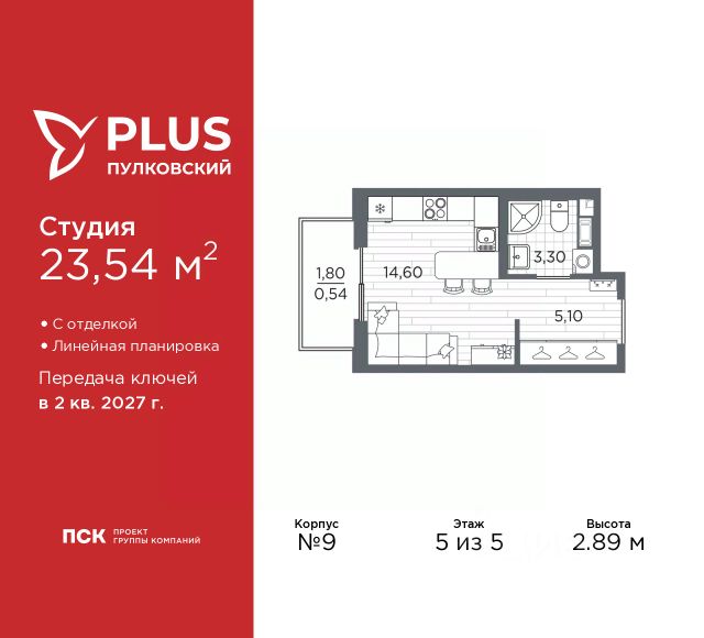 Просторная 1-комн. квартира-студия с отделкой в ЖК "PLUS Пулковский" на 5 этаже. Общая площадь: 24.64 кв.м., площадь гостиной 16.37 кв.м., из которых 5 кв.м. выделено под кухонную зону. Все окна выходят на одну сторону. В квартире один балкон, один совмещенный санузел. Высота потолков 2.75 м. Все квартиры в проекте сдаются с полной чистовой отделкой. Выполняется в двух стилистических решениях светлый стиль и темный современный стиль. Вам остается только расставить мебель. Важное преимущества отделки от застройщика в гарантии на все работы и в том, что фактическая стоимость полной отделки распределяется в ипотечных платежах при покупке в ипотеку. Дом монолитный, многоподъездный, высотой 5 этажей. Квартира находится в 3-й секции в корпусе 1. На этаже 9 квартир. В подъезде 1 грузовой лифт. Начало строительства - 4 квартал 2023 года. Окончание строительства - 4 квартал 2025 года. Оформление сделки по договору долевого участия. Уютный пятиэтажный city квартал PLUS Пулковский расположен в престижном Московском районе на пересечении Пулковского и Волхонского шоссе в новом формирующемся микрорайоне. Рядом проходит одна из важнейших транспортных артерий города Пулковское шоссе, а в 10 минутах езды два въезда на КАД и въезд на ЗСД. Благодаря удобному и быстрому выезду на Пулковское шоссе, можно легко добраться до центра города за 35 мин. До станций метро "Московская" и "Купчино" - 15 мин. на машине, а до аэропорта Пулково - 17 мин. В составе квартала: 30 пятиэтажных домов, школа со спортивным стадионом, 2 детских сада с бассейнами, наземные и подземные паркинги, центральный зеленый бульвар с play hub и местами отдыха. Благоустройство квартала продумано до мельчайших деталей, в его основе - забота о качестве жизни каждого жителя. Дома возводятся по современной монолитной технологии строительства с вентилируемыми фасадами. Благодаря большим увеличенным окнам и отсутствию высокоэтажных домов, во всех квартирах максимальный объем естественного света. В составе квартала запланированы социально-значимые объекты: школа на 825 мест со спортивным стадионом и бассейнами, два детских сада с бассейнами на 220 мест каждый. Территория квартала зонирована таким образом, чтобы автомобильные и пешеходные потоки и не пересекались. Прогулочные и велосипедные дорожки отделены от автомобильных проездов зелеными насаждениями. Дворы закрыты для машин, что дает чувство дополнительной безопасности для жителей особенно, для самых маленьких. Вся территория квартала безбарьерная. Здесь нет пандусов, резких перепадов высот или неудобных ступеней. Вход в парадные с уровня земли. В каждом дворе есть своя оборудованная детская площадка. А в центре микрорайона расположится большая игровая площадка play hub с пространством для командных игр. PLUS Пулковский располагается в молодом микрорайоне, который сейчас находится в стадии активного развития. Он будет обладать собственной развитой инфраструктурой. В радиусе 15 минут езды на автомобиле располагают