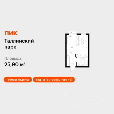 Продаётся квартира-студия площадью 27,82 кв.м на 5 этаже 12 этажного дома (Корпус 4.1, Секция 3) проекта ПИК Таллинский парк. Светлый просторный подъезд на уровне земли, функциональная планировка, большие окна, c отделкой. "Таллинский парк" - проект в Ленинградской области, в районе Новоселье. До станции метро "Проспект Ветеранов" - 15 минут на автомобиле, а до КАД можно доехать всего за 4 минуты. "Таллинский парк" включает 16 жилых домов, детский сад и школу. В проекте появится центральный сквер с обильным озеленением, а через весь квартал протянутся широкие пешеходные бульвары. В зелёных дворах-парках будут оборудованы современные детские и спортивные площадки, обустроены места для отдыха. На первых этажах разместятся магазины, кафе и другие сервисы. Проектом предусмотрены персональные кладовые помещения - это доступный, экономичный и удобный способ хранения сезонных и крупногабаритных вещей. Освободите свою квартиру для полноценной жизни. Район Новоселье активно развивается в городском формате: здесь уже работают детские сады, школа и магазины. Для любителей зимних видов спорта открыта круглосуточная ледовая арена Ice Rink. За покупками и развлечениями также можно быстро доехать: 10 минут - и вы в Аутлете Fashion House Таллинское, гипермаркетах Лента, Леруа Мерлен и Окей. В 10 минутах на автомобиле находится Финский залив, на берегу которого расположились объекты культурного наследия. Рядом - Константиновский парк с отреставрированным дворцом, а чуть дальше расположена усадьба Знаменка. В великолепном Петергофе вы будете уже через 20 минут. Артикул 1026579 (Застройщик ООО "СПЕЦИАЛИЗИРОВАННЫЙ ЗА СТРОЙЩИК "СТРОЙ-ЭКСПЕРТ ") [cn_sbp_1807087]