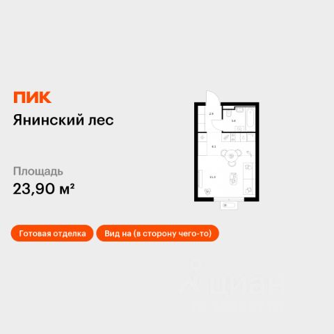 Продаётся квартира-студия площадью 21,7 кв.м на 5 этаже 15 этажного дома (Корпус 4, Секция 1) проекта ПИК Янинский лес. Светлый просторный подъезд на уровне земли, функциональная планировка, большие окна, c отделкой. Жилой квартал "Янинский лес" возводится в районе Янино-1 Ленинградской области. Автобусная остановка находится в 3 минутах пешком. Проект расположен вплотную к восточной границе Санкт-Петербурга - в 4 минутах от КАД. До метро "Ладожская" - 23 минуты на общественном транспорте. До исторического центра города можно доехать за 25 минут на автомобиле. "Янинский лес" - масштабный проект из 32 жилых корпусов, где будет всё для комфортной жизни. Здесь предусмотрены надземные паркинги, откроются детские сады, школа и поликлиника. Кроме этого, появятся места, в которых можно проводить свободное время: ледовая арена и торговый центр площадью больше 3000 м². Жилой район строится по всем правилам ПИК-Стандарта: в зелёных дворах-парках появятся современные детские и спортивные площадки, пешеходный бульвар и другие места для отдыха. На первых этажах разместятся магазины, кафе и другие сервисы. Во дворах не будет автомобилей, а для гостей предусмотрены парковочные места. Проект окружают лесные массивы. В пешей доступности находится Ржевский лесопарк: летом там можно гулять и собирать грибы, а зимой кататься на лыжах. Также рядом расположен памятник природы Колтушские высоты - парк с обустроенными экотропами и веломаршрутом. А главное место притяжения местных жителей - озеро с обустроенным местом для пикников. Артикул 1049708 (Застройщик ООО "СПЕЦИАЛИЗИРОВАННЫЙ ЗАСТРОЙЩИК"ЭКСТРАГРАД") [cn_sbp_1841825]