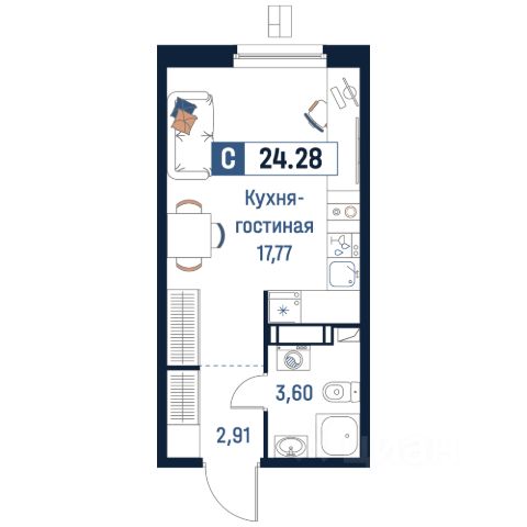 1-92081 Объект активен. Просторная и полностью готовая студия в современном апарт-отеле у метро в Выборгском районе Санкт-Петербурга