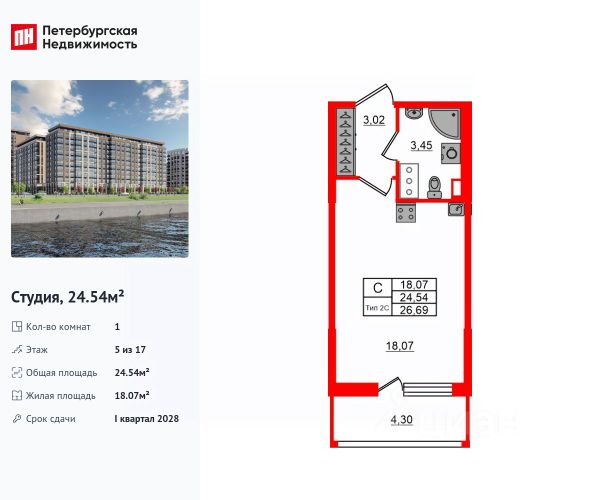 Цена со скидкой до 30% в прямой продаже от застройщика — только в этом месяце. На апартаменты действует беспроцентная рассрочка. Роскошные виды на Неву. Апартамент-студия в комплексе класса бизнес-лайт Зум на Неве на 5-м этаже. Общая площадь 28,96. Чистовая отделка. Зум на Неве расположен в новом месте силы рядом с центром города на первой линии Октябрьской набережной в Невском районе, всего в 7 км от исторической части Санкт-Петербурга. Большой выбор эргономичных и максимально продуманных планировок позволит каждому найти вариант по душе. Панорамные виды на Неву, благоустроенные дворы, детская игровая комната, подземный паркинг, коммерческие зоны на первом этаже, это и многое другое делает Зум на Неве идеальным местом для жизни. Особенности: - Панорамные виды на Неву и город; - 10 мин. до Парка Строителей, 15 мин. до Лондон-молла, Ленты, Максидома, 15 мин. до метро "ул. Дыбенко", 12 мин. до КАД, 10 мин. до центра; - Единая архитектурная концепция. Сдержанные и монументальные фасады в неоклассическом стиле; - Парадный лобби для жильцов. Единый вход в комплекс с администратором, зоной ресепшн и охраной, зоной для бесконтактной доставки посылок и еды; - Подземный отапливаемый паркинг с доступом из парадной; - Доступно 3 варианта отделки на выбор: черновая, предчистовая (White Box) и чистовая; - Зоны отдыха для взрослых и детей, Wi-Fi-покрытие во дворе и в паркинге, зоны для питомцев, арт-объекты и много другое. В шаговой доступности вся необходимая инфраструктура от детских садов и школ до супермаркетов и салонов красоты; - Все происходящее контролируется видеокамерами, а покой внутренней территории и безопасность ваших детей гарантируется полным отсутствием транспорта во дворах в концепции "без машин".