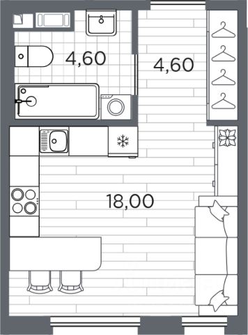 • ✅ Минимальная площадь: 20,5 м²