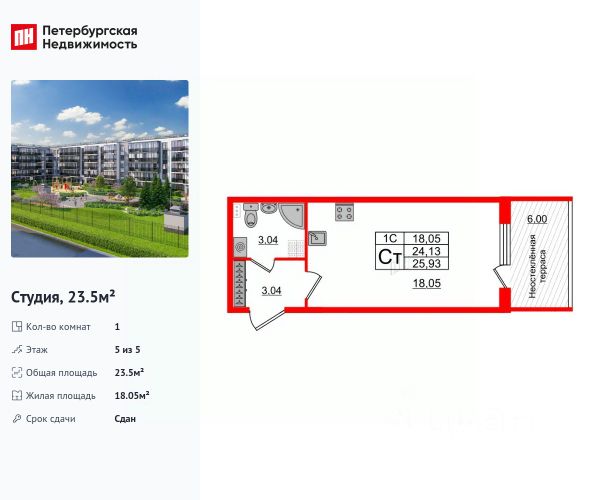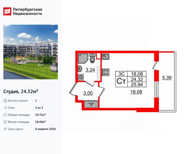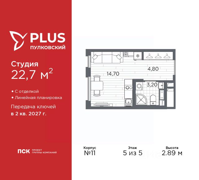 Продается 1-комн. квартира-студия с отделкой в ЖК "PLUS Пулковский" на 5 этаже. Общая площадь: 21.2 кв.м., площадь гостиной 14 кв.м., из которых 5 кв.м. выделено под кухонную зону. Все окна выходят на одну сторону. В квартире один совмещенный санузел. Высота потолков 2.89 м. Дом монолитный, трехподъездный, высотой 5 этажей. Квартира находится в 3-й секции в корпусе 14. На этаже 8 квартир. В подъезде 1 грузовой лифт. Начало строительства - 1 квартал 2026 года. Окончание строительства - 2 квартал 2027 года. Оформление сделки по договору долевого участия. ЖК "PLUS Пулковский" расположен в престижном Московском районе на пересечении Пулковского и Волхонского шоссе, по которым можно быстро добраться до КАД и до станций метро Московская и Звёздная. Поблизости расположены дворцово-парковые ансамбли Пушкина, Павловска, Петергофа, Гатчины, Ломоносова, а также вся торговая и развлекательная инфраструктура: ТК Лето, Outlet Village Pulkovo, Пулково-3, гипермаркеты Лента, Окей, Metro. На территории комплекса будут построены средняя образовательная школа на 825 мест с двумя бассейнами, 2 детских сада на 220 мест каждый. В детских садах тоже будут бассейны. Кроме этого будет построен медицинский центр для взрослых и детей. Во дворах буду оборудованы спортивные и безопасные детские площадки, на первых этажах домов будут расположены коммерческие помещения. Для автолюбителей будут подземные и наземный паркинги. Для жителей домов будет доступно "приложение жителя", которое предоставит такие возможности: — дистанционное открытие дверей в парадную и на территорию комплекса, — просмотр изображений с видеокамер, — контроль за показаниями счетчиков, — коммуникация с УК. Показания всех счетчиков будут собираться дистанционно. В квартирах будет выполнена коллекторная разводка отопления в стяжке пола от коллекторов в межквартирных коридорах. Застройщик ЖК "PLUS Пулковский" - группа компаний ПСК, которая является одной из ведущих девелоперских компаний Санкт Петербурга. Более 16 лет она возводит в Северной столице качественное жилье премиум, бизнес и комфорт-класса, социальные объекты школы и детские сады, апарт-комплексы и торговые центры и является четырехкратным обладателем золотого знака "Надежный застройщик России". #zmFzda