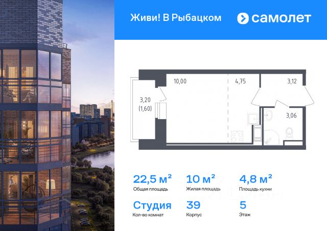 Строим кварталы для жизни с заботой о будущем. Предлагается квартира студия комфорт-класса 21,81 кв.м в корпусе 30 на 5 этаже, в ЖК "Живи! В Рыбацком" Квартира без отделки. Доступность опции "отделка" и возможность комплектации мебелью и декором уточняйте у застройщика. Приобрести квартиру возможно по специальным акциям от застройщика, с текущими условиями акций можно ознакомиться в блоке "Акций". Цена динамическая и может отличаться, уточняйте актуальность у застройщика. Квартал "Живи! В Рыбацком" в Невском районе Санкт-Петербурга расположен рядом с рекой Славянкой и парком. Всего 20 минут пешей прогулки — и вы у метро "Рыбацкое". Автомобилисты будут добираться до КАДа за десять минут. В квартале работают два детских сада, школа и кабинет врача. На первых этажах зданий открыты магазины, кафе и салоны красоты. Во дворе — зеленые бульвары, воркаут-площадка, спортивный и игровой кластеры. Для машин — подземный паркинг. Кирпично-монолитные дома с каменной облицовкой — воплощение долговечности и тепла. Есть в квартале и камерный 30-й корпус, в нем восемь этажей, 70 квартир и приватный двор-парк. В сквозных парадных — безбарьерная среда, помещения для хранения колясок и велосипедов и система видеонаблюдения.