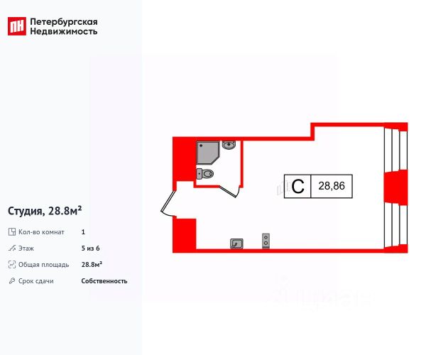1-92081 Объект активен. Просторная и полностью готовая студия в современном апарт-отеле у метро в Выборгском районе Санкт-Петербурга