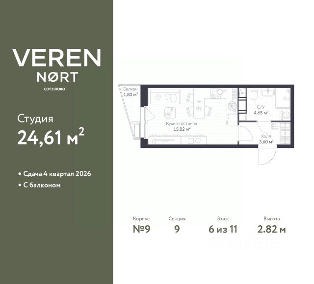 Напрямую продаётся уютная студия 129 общей площадью 27,95 м2 во II очереди в жилом комплексе Сертолово Парк от застройщика ГК Алгоритм. Все квартиры сдаются с чистовой отделкой в природных тонах. Пусть ваш дом будет теплым и уютным. Энергосберегающий дом строится по финским технологиям: наружные стены изготовлены из заводских трехслойных железобетонных панелей толщиной 390 мм, фасады утеплены - толщина утеплителя 150 мм - и закрыты декоративным слоем, толщина 90 мм. Увеличенные оконные проемы и потолки высотой 2,74 м придают квартирам в ЖК Сертолово Парк ощущение простора, обеспечивая максимальное естественное освещение и свежий воздух. Расположение ЖК: идеальное место для комфортной жизни в городе Сертолово. ЖК Сертолово Парк окружен прекрасным лесным массивом, что создает уникальную атмосферу спокойствия и природной красоты прямо за порогом вашего дома. Для детей и взрослых на территории ЖК имеются детские и спортивные площадки. Кроме того, чтобы обеспечить безопасность и уединенность, территория жилого комплекса полностью закрыта. А двор без машин обеспечит спокойствие для родителей и безопасность для детей..