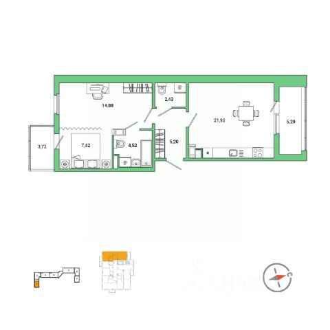 Продаётся 1-комнатная квартира в сданном доме (Оранжевая,12к1), срок сдачи: III-кв. 2022, общей площадью 38 кв.м., на 1 этаже. Расположение, транспортная доступность
