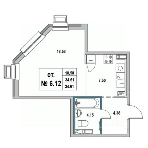 Продаётся студия в строящемся доме (Дом 1), срок сдачи: IV-кв. 2025, общей площадью 34.61 кв.м., на 6 этаже. Новый жилой дом от застройщика "Унистрой" расположен по адресу Ленинградская область, Выборг, 2-я Южная улица.