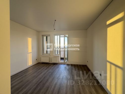 На полу: в комнате - ламинат, в санузле и на лоджии - плитка