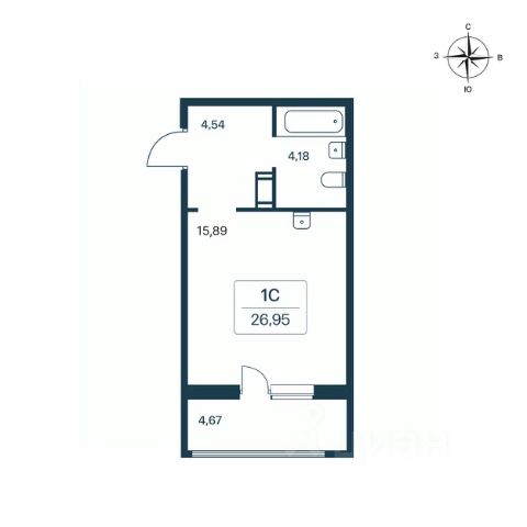 Квартира-студия 28 кв.м (в т.ч. лоджия 4,5 кв.) Дом сдан, придомовая территория благоустроена.