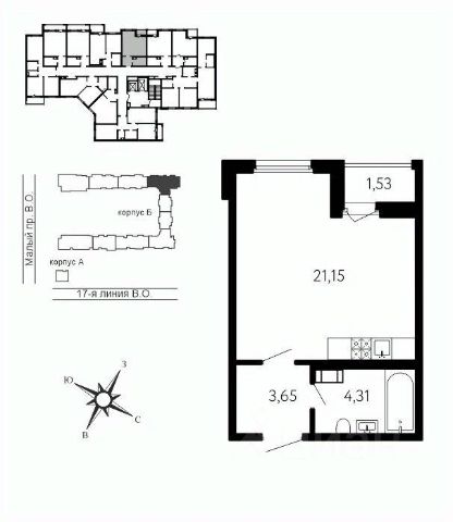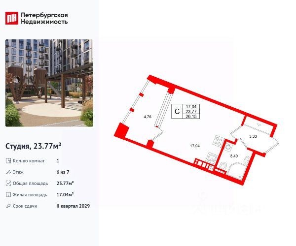 Спешите оформить бронирование, пока действует скидка! Предложение ограничено! Стоимость квартиры указана со скидкой, ваша экономия составит 397,490 RUB. По всем вопросам звоните в офис продаж, наши менеджеры вам все расскажут! Продается 1-комн. квартира-студия с предчистовой отделкой в ЖК "Новая Земля" на 6 этаже. Общая площадь: 21.45 кв.м., площадь гостиной 16.08 кв.м., из которых 5.25 кв.м. выделено под кухонную зону. Все окна выходят на одну сторону. В квартире один совмещенный санузел. Высота потолков 2.85 м. Дом монолитный, многоподъездный, высотой 17 этажей. Квартира находится в 1-й секции в корпусе 1.4. На этаже 5 квартир. В подъезде 1 пассажирский и 1 грузовой лифт. Окончание строительства - 4 квартал 2028 года. Оформление сделки по договору долевого участия. Новая Земля — проект LEGENDA в локации морской набережной Васильевского острова, где уже сегодня формируется многообещающее и перспективное место для жизни и инвестиций. Проект состоит из двух очередей, расположенных в непосредственной близости, но имеющих идеологически разный подход к проектированию и ассортиментному предложению. Первая очередь, где квартиры уже в продаже, наполнена компактными функциональными и эстетичными сьютами в комплектации TechnoBox, подходящими для активной аудитории, предпочитающей больше времени проводить в городе. Транспортная доступность обеспечена благодаря близости выезда на ЗСД, который позволяет быстро добраться как до центра города, так и до других районов Санкт-Петербурга. Архитектурная концепция проекта задает новый стандарт для этой локации. Дизайн фасадов, большие окна без импостов, современные инженерные решения — всё это создаёт атмосферу комфортного и эстетичного пространства, отвечающего самым высоким требованиям. В проекте представлена новая линейка планировочных решений, созданных по принципам отельного проектирования. Сьюты от LEGENDA — это уникальная работа с пространством, сочетающая сверхфункциональность и удобство, чистоту линий и стилистический минимализм. Планировочные решения в рамках первой очереди проекта будут поделены на несколько сегментов, отличающихся размерами, функциональной наполненностью и отвечающих потребностям различных жителей проекта.