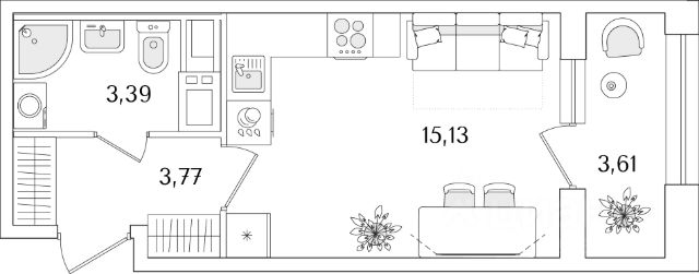 Планировка продумана - выделены кухня, рабочее место и спальная зона.