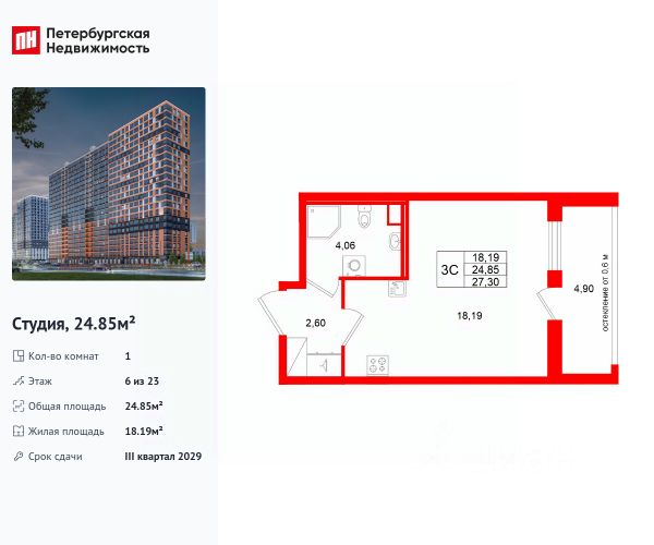 Продаётся квартира-студия площадью 22,2 кв.м на 6 этаже 15 этажного дома (Корпус 1, Секция 2) проекта ПИК Янинский лес. Светлый просторный подъезд на уровне земли, функциональная планировка, большие окна, c отделкой. Жилой квартал "Янинский лес" возводится в районе Янино-1 Ленинградской области. Автобусная остановка находится в 3 минутах пешком. Проект расположен вплотную к восточной границе Санкт-Петербурга - в 4 минутах от КАД. До метро "Ладожская" - 23 минуты на общественном транспорте. До исторического центра города можно доехать за 25 минут на автомобиле. "Янинский лес" - масштабный проект из 32 жилых корпусов, где будет всё для комфортной жизни. Здесь предусмотрены надземные паркинги, откроются детские сады, школа и поликлиника. Кроме этого, появятся места, в которых можно проводить свободное время: ледовая арена и торговый центр площадью больше 3000 м². Жилой район строится по всем правилам ПИК-Стандарта: в зелёных дворах-парках появятся современные детские и спортивные площадки, пешеходный бульвар и другие места для отдыха. На первых этажах разместятся магазины, кафе и другие сервисы. Во дворах не будет автомобилей, а для гостей предусмотрены парковочные места. Проект окружают лесные массивы. В пешей доступности находится Ржевский лесопарк: летом там можно гулять и собирать грибы, а зимой кататься на лыжах. Также рядом расположен памятник природы Колтушские высоты - парк с обустроенными экотропами и веломаршрутом. А главное место притяжения местных жителей - озеро с обустроенным местом для пикников. Артикул 1048882 (Застройщик ООО "СПЕЦИАЛИЗИРОВАННЫЙ ЗАСТРОЙЩИК"ЭКСТРАГРАД") [cn_sbp_1828253]
