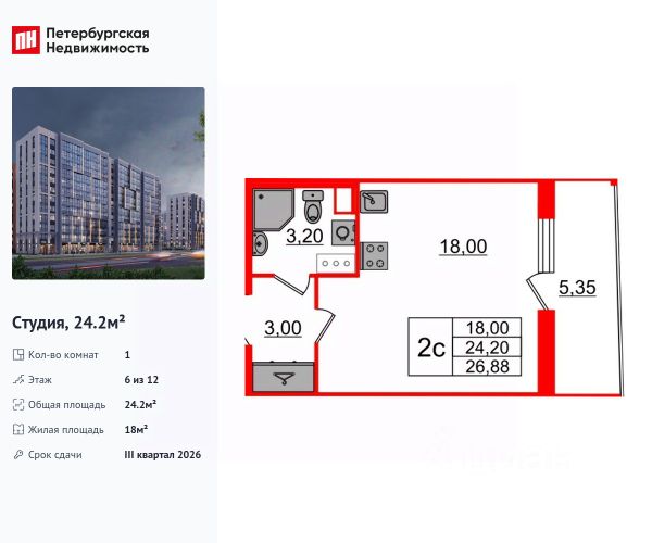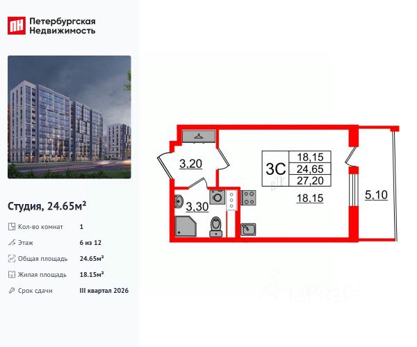 Продается уютная студия от застройщика в жилом комплексе "Бионика Заповедная" в динамичном Приморском районе. До метро можно добраться на транспорте всего за 11 минут. Удобная, классическая, функциональная европланировка, вместительная прихожая 3 м². Общая площадь студии - 21.35 м², жилая 15.3 м², высота потолка 2.77 м. Квартира продается с отделкой "Норд Лайн светлый плюс". Что особенного в ЖК "Бионика Заповедная"? • Оазис в городе 3 минуты пешком до Новоорловского заказника (140 ГА) • Захватывающие виды из окон на хвойный лесопарк • Всесезонный "Заповедный парк" во дворе площадью 23000 кв.м. • 5 единых входных групп с авторским дизайном и лаундж-зонами, сити-виллы на первых этажах с палисадниками и высотой потолков до 4 м • Места притяжения: фонтан "Бионика", спортивный кластер со скейт-парком, фотозоны с арт-объектами