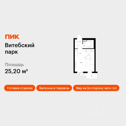Продаётся квартира-студия площадью 23,9 кв.м на 6 этаже 12 этажного дома (Корпус 6, Секция 2) проекта ПИК Витебский парк. Светлый просторный подъезд на уровне земли, функциональная планировка, большие окна, предчистовая отделка. Жилой квартал "Витебский парк" находится во Фрунзенском районе Санкт-Петербурга, в 15 минутах пешком от метро "Обводный канал". А в 2027 году всего в паре минут от проекта планируют открыть станцию метро "Боровая". В квартал входят 3 детских сада, школа и 7 жилых домов с дворами-парками, куда не могут зайти посторонние люди и заехать автомобили. Школа на 1250 мест и детский сад на 350 мест откроются одновременно с заселением первой очереди, это значит, что жители проекта смогут отдать своих детей в новые образовательные учреждения на территории квартала. Во дворах приятно отдыхать, знакомиться с соседями и даже заниматься йогой, а для детей мы построим детские площадки. Рядом появятся современные спортивные площадки. На первых этажах домов откроются магазины, кафе и другие сервисы. Через весь жилой район протянется широкий пешеходный бульвар для прогулок и спорта. Рядом с "Витебским парком" есть всё для комфортной жизни: магазины, торговые центры, фитнес-клубы, кафе и рестораны, а ещё детские сады, школы, вузы и поликлиника. Артикул 1005261 (Застройщик ООО "СЗ "Лиговский Сити") [cn_sbp_1816825]