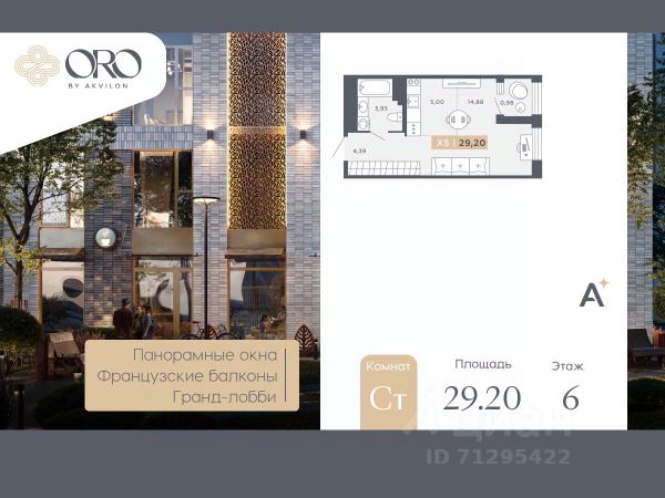 Однокомнатная квартира-студия от застройщика с отделкой в ЖК "ORO by Akvilon" на 6 этаже. Общая площадь: 29.2 кв.м., площадь гостиной 19.88 кв.м., из которых 5 кв.м. выделено под кухонную зону. Все окна выходят на одну сторону. В квартире одна лоджия, один совмещенный санузел. Высота потолков 2.85 м. Дом монолитный, двухподъездный, высотой 17 этажей. Квартира находится в 1-й секции в корпусе 2. На этаже 7 квартир. В подъезде 1 пассажирский и 1 грузовой лифт. Окончание строительства - 4 квартал 2027 года. Оформление сделки по договору долевого участия. В шаговой доступности от жилого комплекса расположена станция метро (расстояние по прямой) "Звёздная" (800 м), также недалеко от этого корпуса расположены станции метро: "Купчино", "Московская", "Ленинский Проспект", "Дунайская". ЖК "ORO by Akvilon" - старт продаж жилого комплекса бизнес-класса в Московском районе. -Панорамные окна в пол во всех квартирах -Алюминиевые оконные профили с многокамерными стеклопакетами -Французские балконы с золотой окантовкой -Высота этажа 3,15 метра -Увеличенные дверные проемы - 2,3 метров высотой -Выделенные места для кондиционеров на каждом этаже -Фреоновые трубки заведенные в квартиру от мест установки внешних блоков кондиционеров -Дизайнерская отделка гранд-лобби с биокамином и золотыми элементами -Импортные бесшумные лифты с дизайнерской отделкой и увеличенной высотой кабины Отделка квартир Премиальная отделка в двух цветовых решениях: Beigestone и Greystone. Дозаказ для любой квартиры Стандарты Группы Аквилон для вашей комфортной жизни Thermo-S экономия на коммунальных платежах за счет дополнительно утепленных стен, кровли и цоколя. Энергоэффективные окна с селективным покрытием и аргоновым заполнением Soundstop - дополнительная шумоизоляция внутренних перегородок и межэтажных перекрытий, шумозащитные окна, малошумные лифты Light-in - в квартирах комфортный микроклимат. Многокамерные стеклопакеты сохраняют тепло зимой и отсеивают излишки излучения солнечного света летом, сохраняя прохладу в помещении. Vent-in - в каждой комнате есть клапаны индивидуальной вентиляции, которые обеспечивают приток свежего воздуха с улицы. inHOME умный дом в каждой квартире Интеллектуальная цифровая система, которая позволит дистанционно решать бытовые вопросы, управлять квартирой и экономить на оплате коммунальных услуг. В состав inHOME входят: IP-домофон, Face key, "умные" счетчики, датчики протечки, дистанционное отключение розеток, и т.д. Подземный паркинг -Лифты в каждой секции со спуском в паркинг -Отделка лифтовых холлов паркинга в стиле Гранд лобби + дизайнерская навигация самого паркинга -Возможность установки электрозарядки в паркинге или на территории ЖК -GSM усилитель в паркинге Двор -Ландшафтный дизайн с геопластикой и цветочными аркадами -Сад цветущих сезонов -Разноуровневая подсветка -Детские площадки нового поколения -Живой зелёный забор -Закрытый двор без машин Локация -7 мин. до м. Звездная -10 мин. до м. Московска