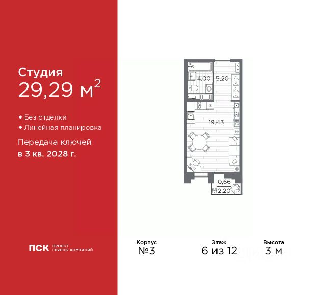 1-комн. квартира-студия от застройщика в Клубный квартал "Ассамблея" на 6 этаже. Квартира без отделки, после выдачи ключей можно делать ремонт. Общая площадь: 41.41 кв.м., площадь гостиной 31.6 кв.м., из которых 10 кв.м. выделено под кухонную зону. Все окна выходят на одну сторону. В квартире один совмещенный санузел. Высота потолков 3.0 м. Дом монолитный, черырехподъездный, высотой 12 этажей. Квартира находится в 4-й секции в корпусе 5. На этаже 10 квартир. В подъезде 1 пассажирский и 1 грузовой лифт. Окончание строительства - 3 квартал 2028 года. Оформление сделки по договору долевого участия. В шаговой доступности от жилого комплекса расположены станции метро (расстояние по прямой): "Горный институт" (1.0 км), "Василеостровская" (1.4 км), "Приморская" (1.5 км), также недалеко от этого корпуса расположены станции метро: "Спортивная", "Чкаловская". "Клубный квартал Ассамблея" — проект бизнес-класса на Васильевском острове, в самом сердце исторического Петербурга. Комплекс состоит из пяти корпусов переменной этажности — от 7 до 12 этажей — с выразительной архитектурой в стиле неомодернизма: светлый клинкер, панорамное остекление, просторное лобби с потолками высотой почти 8 метров. Потолки — до 3,2 метров. Подземный паркинг на 667 машиномест. Комфорт и инфраструктура Проект ориентирован на комфортную городскую жизнь. В закрытом дворе — ландшафтное озеленение, современные детские и спортивные площадки. Внутренний клуб для резидентов включает коворкинг, переговорные, кинозал, фитнес и бьюти-зону. IP-домофония с просмотром камер видеонаблюдения, дистанционное открывание дверей и доступа на территорию и в парадную со смартфона и планшета, просмотр показаний счетчиков, приложение для жителей PSK Home. Локация Расположение на Васильевском острове — сильная сторона проекта. До четырех станций метро ("Горный институт", "Василеостровская", "Спортивная", "Приморская") — 515 минут пешком. В шаговой доступности — зелёные зоны, культурные учреждения, в том числе сад "Василеостровец" и ДК имени Кирова. Основные магистрали Большой, Средний и Малый проспекты, Наличная и Уральская улицы. Съезд на ЗСД расположен недалеко от станции метро "Приморская", близ береговой линии. Благовещенский и Дворцовый мосты соединяют остров с центром города, а мосты Тучков, Биржевой и Бетанкура — с Петроградской стороной. Застройщик Группа компаний ПСК является одной из ведущих девелоперских компаний Санкт Петербурга. На протяжении 18 лет она возводит в Северной столице качественное жилье премиум, бизнес и комфорт-класса, социальные объекты школы и детские сады, апарт-отели и торговые центры. Является шестикратным обладателем золотого знака "Надежный застройщик России". #2mZaZt