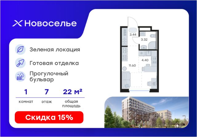 Продаётся квартира-студия площадью 25,94 кв.м на 7 этаже 12 этажного дома (Корпус 4.1, Секция 1) проекта ПИК Таллинский парк. Светлый просторный подъезд на уровне земли, функциональная планировка, большие окна, без отделки. "Таллинский парк" - проект в Ленинградской области, в районе Новоселье. До станции метро "Проспект Ветеранов" - 15 минут на автомобиле, а до КАД можно доехать всего за 4 минуты. "Таллинский парк" включает 16 жилых домов, детский сад и школу. В проекте появится центральный сквер с обильным озеленением, а через весь квартал протянутся широкие пешеходные бульвары. В зелёных дворах-парках будут оборудованы современные детские и спортивные площадки, обустроены места для отдыха. На первых этажах разместятся магазины, кафе и другие сервисы. Проектом предусмотрены персональные кладовые помещения - это доступный, экономичный и удобный способ хранения сезонных и крупногабаритных вещей. Освободите свою квартиру для полноценной жизни. Район Новоселье активно развивается в городском формате: здесь уже работают детские сады, школа и магазины. Для любителей зимних видов спорта открыта круглосуточная ледовая арена. За покупками и развлечениями также можно быстро доехать: 10 минут - и вы в Аутлете Таллинское, гипермаркетах Лента, Леруа Мерлен и Окей. В 10 минутах на автомобиле находится Финский залив, на берегу которого расположились объекты культурного наследия. Рядом - Константиновский парк с отреставрированным дворцом, а чуть дальше расположена усадьба Знаменка. В великолепном Петергофе вы будете уже через 20 минут. Артикул 1026151 (Застройщик ООО "СПЕЦИАЛИЗИРОВАННЫЙ ЗА СТРОЙЩИК "СТРОЙ-ЭКСПЕРТ ") [cn_sbp_1826009]