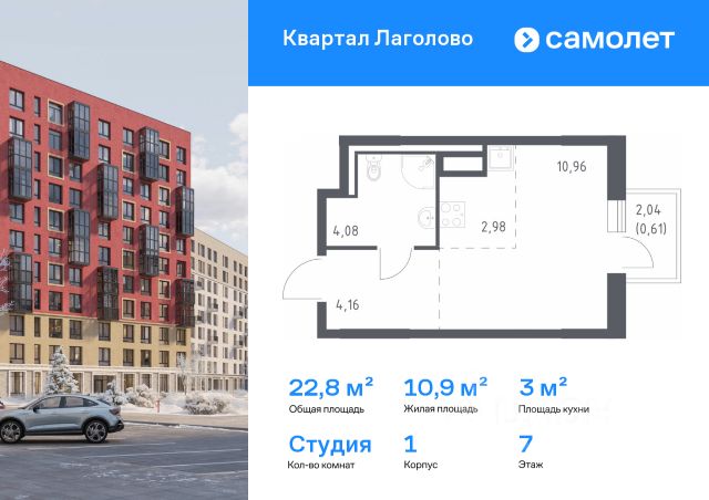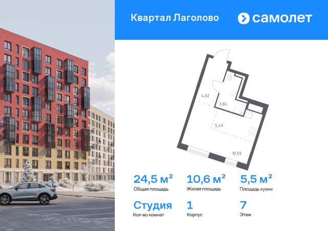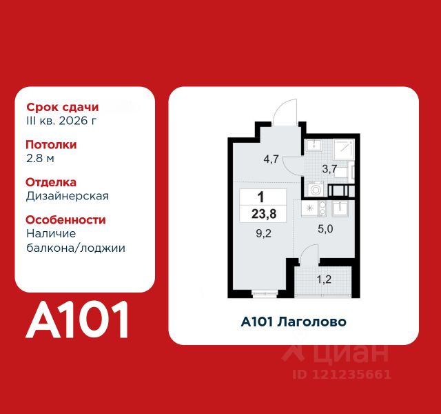 Студия площадью 22.60 в ЖК "А101 Лаголово" c лоджией на 7 этаже. Квартира с отделкой. Вид из окна на улицу. В квартире 1 санузел. Высота потолков 2.8 м. Предложения от застройщика на декабрь 2025: - Гибкая рассрочка 20 000 руб/мес. и первым взносом 10%. ОТДЕЛКА Для квартир с чистовой отделкой предлагается три варианта дизайна: Классика, Карелия светлая и Карелия темная. Варианты всех дизайнерских решений представлены на фотографиях. Подробности можно уточнить у менеджера. На все отделочные работы от застройщика предоставляется гарантия. ОСОБЕННОСТИ ПЛАНИРОВКИ Глубокая лоджия от 1,4м позволяет организовать отдельный кабинет, мастерскую или зимний сад с лаундж-зоной. ПАРАДНАЯ В каждой парадной предусмотрены места для хранения велосипедов и колясок, гостевой санузел, лапамойка (место для мытья домашних животных или колес велосипедов) и удобная зона ожидания для гостей. ДВОРЫ И ОКРУЖЕНИЕ Просторные дворы свободны от машин и закрыты от посторонних. Большую часть комплекса займут благоустроенные зелёные зоны, теневые сады и городские общественные пространства с развитой тротуарной сетью и велодорожками. Каждый дом оборудован системами видеонаблюдения и контроля доступа. "А101 Лаголово" - современный город у подножия знаменитых Дудерговских высот, в объятиях чистейших озёр и зелёных живописных массивов, наполненный всем необходимым для счастливой жизни. ИНФРАСТРУКТУРА. Мы занимаемся комплексным освоением территории. Наш приоритет - доступность всех сервисов для счастливой жизни. 1. Лаголово-город 15-ти минутной доступности. Вся необходимая инфраструктура: магазины, салоны красоты, образовательные учреждения, медицинские центры находятся в 15-ти минутах пешей прогулки от любой точки жилого комплекса. Это позволяет не тратить время на долгие перемещения. 2. Представьте идеальный город, где ребенок может спокойно играть, а пожилой человек наслаждаться заслуженным отдыхом. Жилая среда нашего комплекса может комфортно использоваться как 8-летним ребенком, так и 80-летним пожилым человеком. Дома, улицы, общественные пространства, тротуары спроектированы с заботой о людях разных возрастов. 3. Мы активно развиваем авторскую образовательную экосистему "Лёрнити". Она включает строительство 8 современных детских садов (2000 мест) и 3 школ (2945 учащихся). Мы учим родителей гармонично общаться с детьми, помогаем малышам подготовиться к школе, а подросткам - выбрать будущую профессию и развить таланты. Не хватает средств на покупку кладового помещения? Оформите ипотеку на квартиру и добавьте к ней часть стоимости кладовой. ЗАСТРОЙЩИК ГК "А101" - крупный инвестиционно-строительный холдинг, занимает 6-е место по объему строительства в России (по данным "Единого ресурса застройщиков" на 2023 год). НКР присвоило ГК "А101" кредитный рейтинг A+.ru, подтверждая его надежность и финансовую устойчивость для завершения строительства ЖК.