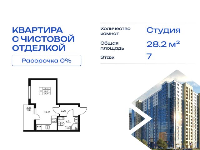 Продажа квартир-студий на 7 этаже в городском поселении Бугровское Ленинградской области