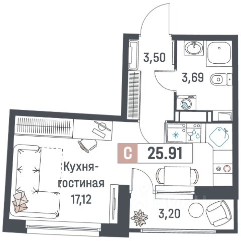 Продаётся студия в жилищном комплексе "Энфилд" (корпус Дом 18 секция 5). Общая площадь 26,64 кв. м, площадь комнат 17,29 кв.м. Санузел. Квартира расположена на 7 этаже 12 этажного дома. Срок сдачи корпуса IV квартал 2027 года. Современный жилой квартал "Энфилд" от компании Arsenal объединяет в себе преимущества хорошей экологии и удобного расположения рядом с городом. Квартал расположен на территории Мурино-Бугры, в 10 минутах от метро Девяткино. В состав ЖК "Энфилд" войдет 17 домов высотой до 12 этажей, 14 из них уже построено и сдано. На территории работает два детских сада и школа с углубленным изучением иностранных языков. Квартал славится красивой территорией, пешеходным бульваром с фонтанами, детскими и спортивными площадками, инфраструктурой для отдыха. В 5 минутах ходьбы расположен гипермаркет "Лента", из квартала предусмотрен удобный выезд на КАД.