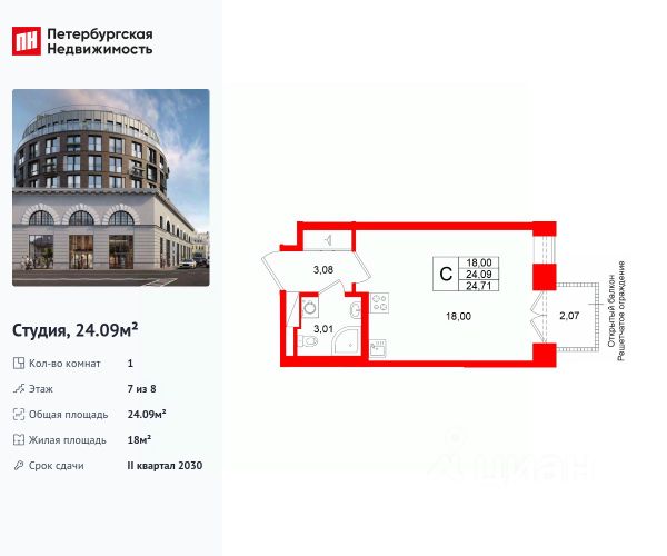 Продается 1-комн. квартира-студия с предчистовой отделкой в ЖК "Новая Земля" на 7 этаже. Общая площадь: 20.25 кв.м., площадь гостиной 14.45 кв.м., из которых 4.96 кв.м. выделено под кухонную зону. Все окна выходят на одну сторону. В квартире один совмещенный санузел. Высота потолков 2.85 м. Дом монолитный, многоподъездный, высотой 17 этажей. Квартира находится в 1-й секции в корпусе 1.6. На этаже 5 квартир. В подъезде 1 пассажирский и 1 грузовой лифт. Окончание строительства - 4 квартал 2028 года. Оформление сделки по договору долевого участия. Новая Земля — проект LEGENDA в локации морской набережной Васильевского острова, где уже сегодня формируется многообещающее и перспективное место для жизни и инвестиций. Проект состоит из двух очередей, расположенных в непосредственной близости, но имеющих идеологически разный подход к проектированию и ассортиментному предложению. Первая очередь, где квартиры уже в продаже, наполнена компактными функциональными и эстетичными сьютами в комплектации TechnoBox, подходящими для активной аудитории, предпочитающей больше времени проводить в городе. Транспортная доступность обеспечена благодаря близости выезда на ЗСД, который позволяет быстро добраться как до центра города, так и до других районов Санкт-Петербурга. Архитектурная концепция проекта задает новый стандарт для этой локации. Дизайн фасадов, большие окна без импостов, современные инженерные решения — всё это создаёт атмосферу комфортного и эстетичного пространства, отвечающего самым высоким требованиям. В проекте представлена новая линейка планировочных решений, созданных по принципам отельного проектирования. Сьюты от LEGENDA — это уникальная работа с пространством, сочетающая сверхфункциональность и удобство, чистоту линий и стилистический минимализм. Планировочные решения в рамках первой очереди проекта будут поделены на несколько сегментов, отличающихся размерами, функциональной наполненностью и отвечающих потребностям различных жителей проекта.