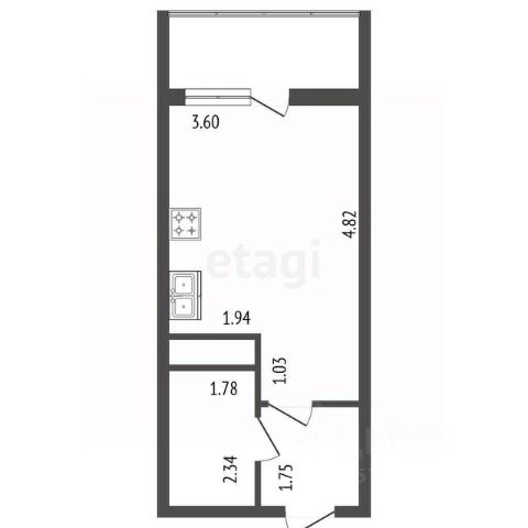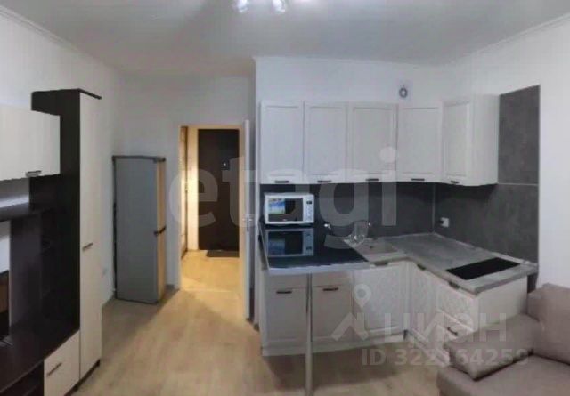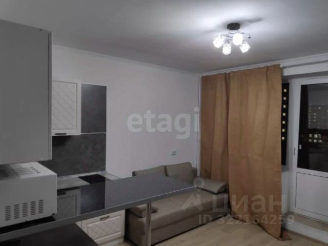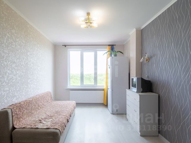 1-комн. квартира-студия с отделкой в ЖК "Аквилон RIVA" на 7 этаже. Общая площадь: 26.38 кв.м., площадь гостиной 17.24 кв.м., из которых 5 кв.м. выделено под кухонную зону. Все окна выходят на одну сторону. В квартире один балкон, один совмещенный санузел. Высота потолков 2.73 м.