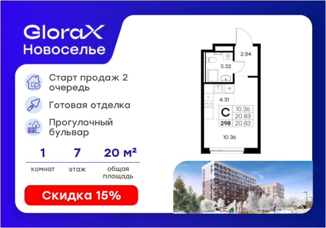 Продаётся квартира-студия площадью 25,94 кв.м на 7 этаже 12 этажного дома (Корпус 4.1, Секция 1) проекта ПИК Таллинский парк. Светлый просторный подъезд на уровне земли, функциональная планировка, большие окна, без отделки. "Таллинский парк" - проект в Ленинградской области, в районе Новоселье. До станции метро "Проспект Ветеранов" - 15 минут на автомобиле, а до КАД можно доехать всего за 4 минуты. "Таллинский парк" включает 16 жилых домов, детский сад и школу. В проекте появится центральный сквер с обильным озеленением, а через весь квартал протянутся широкие пешеходные бульвары. В зелёных дворах-парках будут оборудованы современные детские и спортивные площадки, обустроены места для отдыха. На первых этажах разместятся магазины, кафе и другие сервисы. Проектом предусмотрены персональные кладовые помещения - это доступный, экономичный и удобный способ хранения сезонных и крупногабаритных вещей. Освободите свою квартиру для полноценной жизни. Район Новоселье активно развивается в городском формате: здесь уже работают детские сады, школа и магазины. Для любителей зимних видов спорта открыта круглосуточная ледовая арена Ice Rink. За покупками и развлечениями также можно быстро доехать: 10 минут - и вы в Аутлете Fashion House Таллинское, гипермаркетах Лента, Леруа Мерлен и Окей. В 10 минутах на автомобиле находится Финский залив, на берегу которого расположились объекты культурного наследия. Рядом - Константиновский парк с отреставрированным дворцом, а чуть дальше расположена усадьба Знаменка. В великолепном Петергофе вы будете уже через 20 минут. Артикул 1026151 (Застройщик ООО "СПЕЦИАЛИЗИРОВАННЫЙ ЗА СТРОЙЩИК "СТРОЙ-ЭКСПЕРТ ") [cn_sbp_1826009]