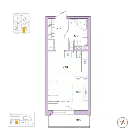 Компактная квартира, где каждый уголок зонирован и использован максимально полезно. Система хранения располагается в прихожей, а кухня и спальное место объединены в одно помещение. Балкон глубиной 1,2 метра станет местом отдыха с видом на восход. Напрямую продаётся квартира -студия 44 на 7 этаже (из 8) общей площадью 28,85 м2 в III очереди в жилом комплексе Сертолово Парк от застройщика ГК Алгоритм. Все квартиры в ЖК Сертолово Парк сдаются с чистовой отделкой в скандинавском стиле. Въезжайте и живите без дополнительных затрат на ремонт. Увеличенные оконные проемы и потолки высотой 2,74 м придают квартирам в ЖК Сертолово Парк ощущение простора, обеспечивая максимальное естественное освещение и свежий воздух. Энергосберегающий дом строится по финским технологиям: наружные стены изготовлены из заводских трехслойных железобетонных панелей толщиной 390 мм, фасады утеплены - толщина утеплителя 150 мм - и закрыты декоративным слоем -толщина 90 мм. Расположение ЖК: идеальное место для комфортной жизни в городе Сертолово. В 200 метрах находится детская и взрослая поликлиники. Вблизи детские сады и школы. ЖК Сертолово Парк окружен прекрасным лесным массивом, что создает уникальную атмосферу спокойствия и природной красоты прямо за порогом вашего дома. Для детей и взрослых на территории ЖК имеются детские и спортивные площадки. Кроме того, чтобы обеспечить безопасность и уединенность, территория жилого комплекса полностью закрыта. Крытый многоуровневый наземный паркинг с грузовым лифтом. Закрытая территория жилого комплекса с круглосуточным видеонаблюдением. Звоните! Ответим на все вопросы.