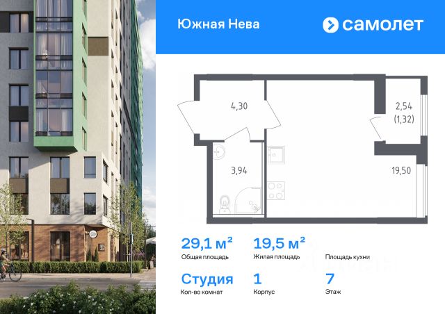 Продается просторная студия от застройщика в жилом комплексе "Город звезд" в новом городе на правом берегу Невы. До метро можно добраться на транспорте всего за 13 минут. Удобная, классическая, функциональная европланировка, вместительная прихожая 3.08 м². Общая площадь студии - 24.41 м², жилая 18.19 м², высота потолка 2.77 м. Квартира продается с отделкой "NORD LINE WHITE". Что особенного в ЖК "Город звезд"? • Инновационный Лицей Setl с оригинальной архитектурной концепцией и уникальной образовательной средой • Невский лесопарк под окнами - всегда свежий воздух и полноценный отдых на природе • Четыре тематические площади отдыха с разнообразным благоустройством • Аллея Звёзд - променад протяженностью 5 км с ландшафтным озеленением, зонами отдыха и велодорожкой • Выход на набережную реки Утки, где можно порыбачить или взять напрокат лодку • Единая входная группа с ресепшен и подземный паркинг